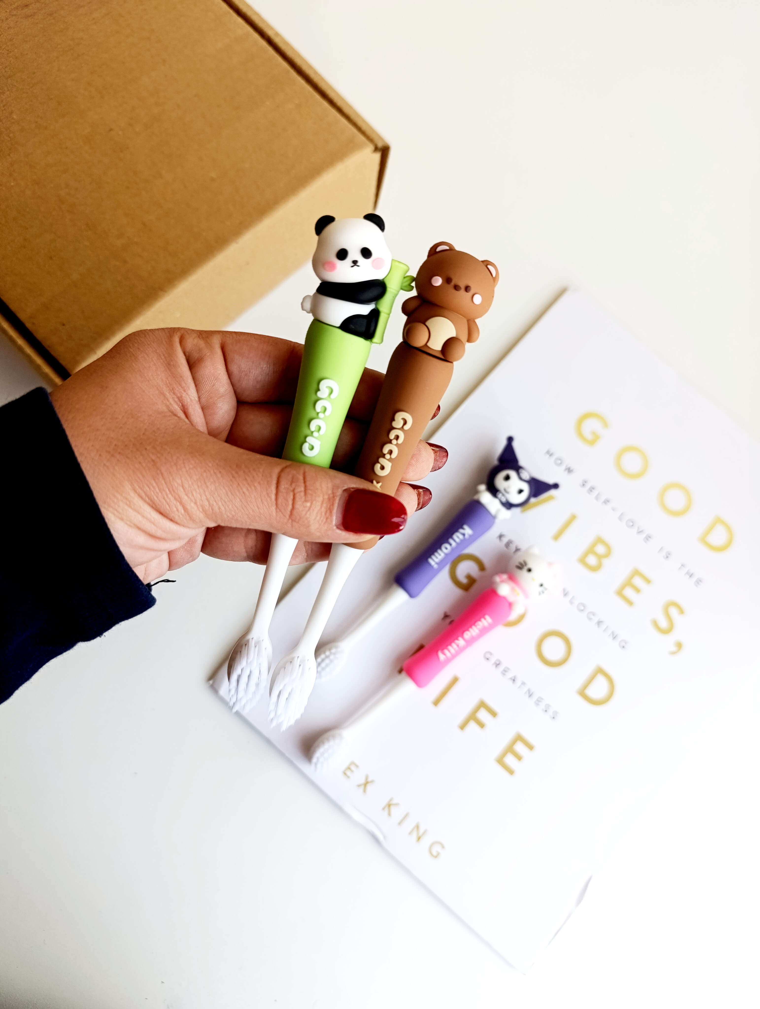 با این مسواک های فانتزی و جذاب مراقب سلامت دندون هاش باش،مطمئن باش با اینا دیگه محاله مسواک نزنه!چون هم عروسکیه هم دسته ی سیلیکونی و نرمی داره که دستاش اذییت نمیشه